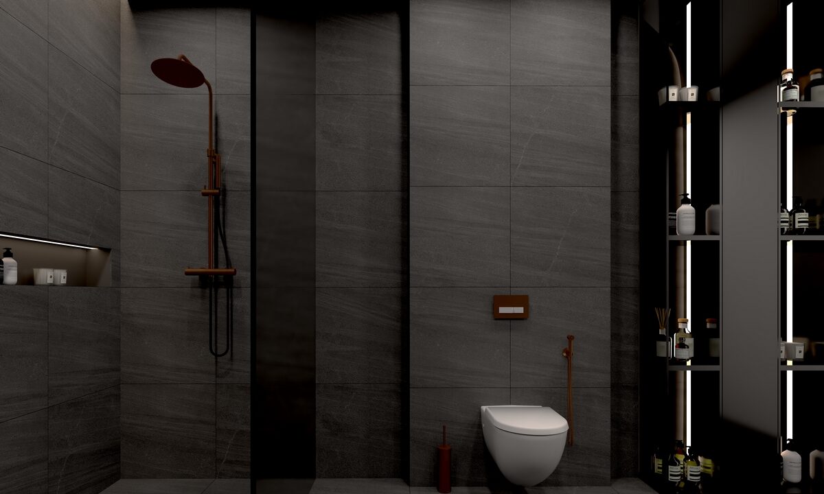 Bagi kamu yang ingin menghadirkan tampilan kamar mandi yang modern dan berkarakter, model keramik bernuansa cool tone bisa menjadi pilihan yang tepat. Warna abu-abu gelap pada granit menghadirkan kesan keren dan maskulin, sekaligus memperkuat tampilan kamar mandi agar terlihat lebih elegan.